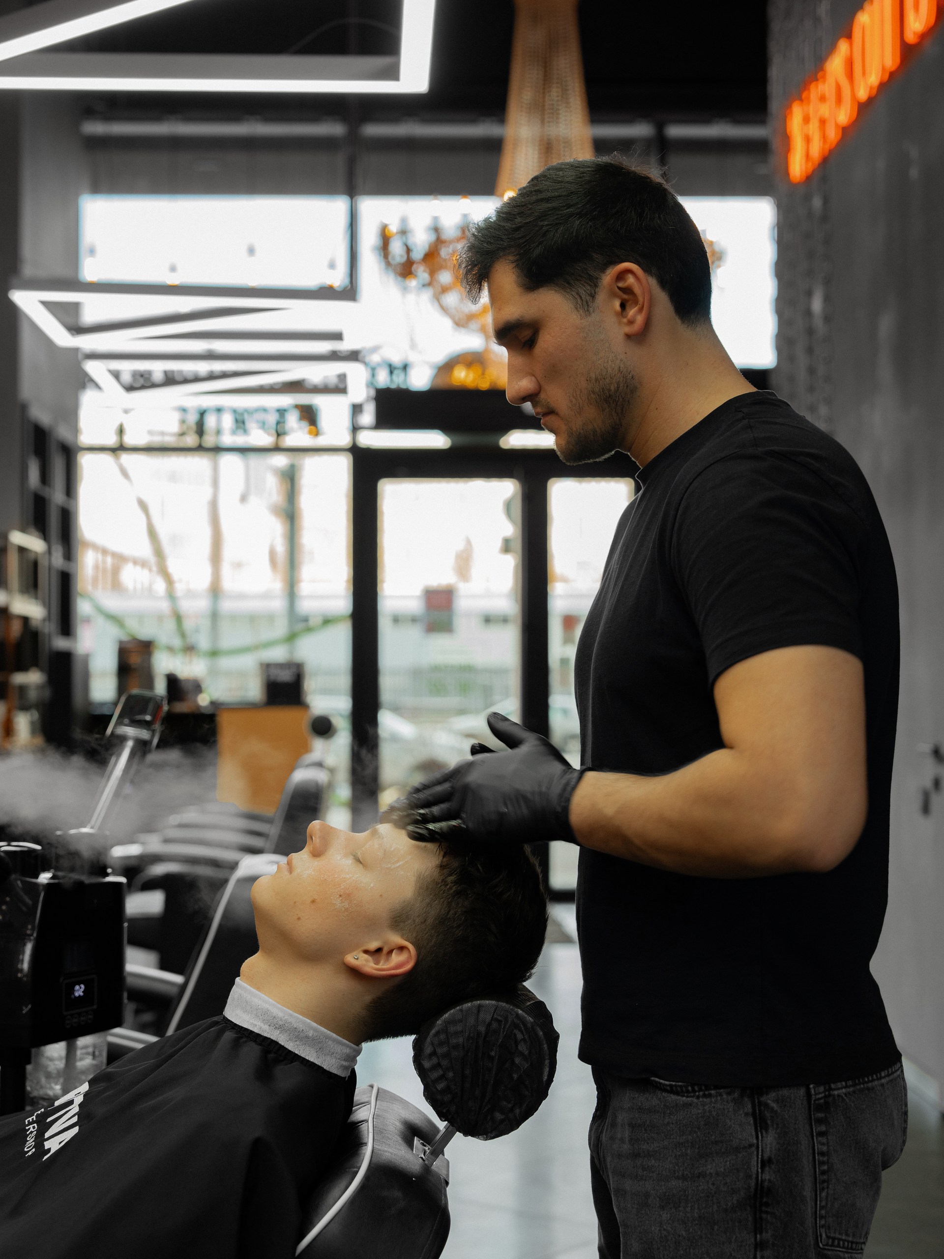 *В кресле Надира можно не только получить классную стрижку от мастера с железной выдержкой, но и обсудить последний бой, философские вопросы жизни или поспорить о том, какая часть "Форсажа" круче, под биты любимого рэпа.*